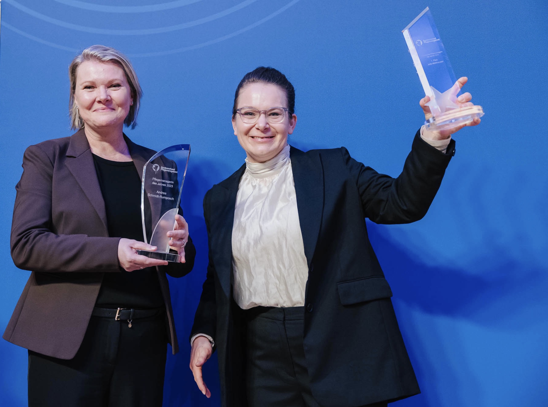 Der Titel Pflegemanagerin des Jahres geht in diesem Jahr an Andrea Schmidt-Rumposch. Julia Mühlhausen wurde zur Nachwuchs-Pflegemanagerin des Jahres gekürt. Veränderungen gemeinsam mit allen Beteiligten zu gestalten zeichnet beide Führungspersönlichkeiten aus.